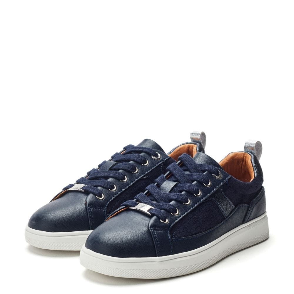 Add Almie to your trainer collections. This trainer features reflective, metallic panels for a modern flair. The sturdy sole provides excellent comfort and support for all-day wear. Pair with both casual and athleisure outfits. Complete with leather sock and lining.