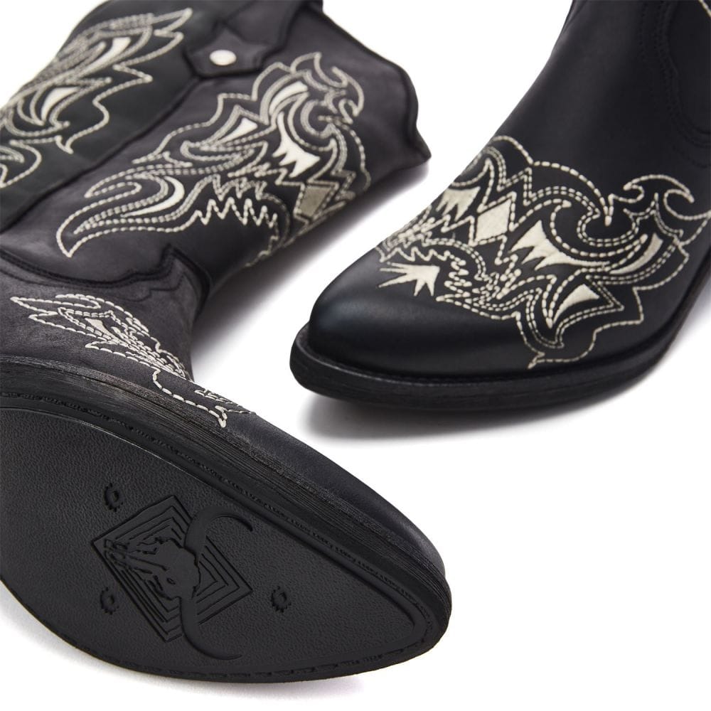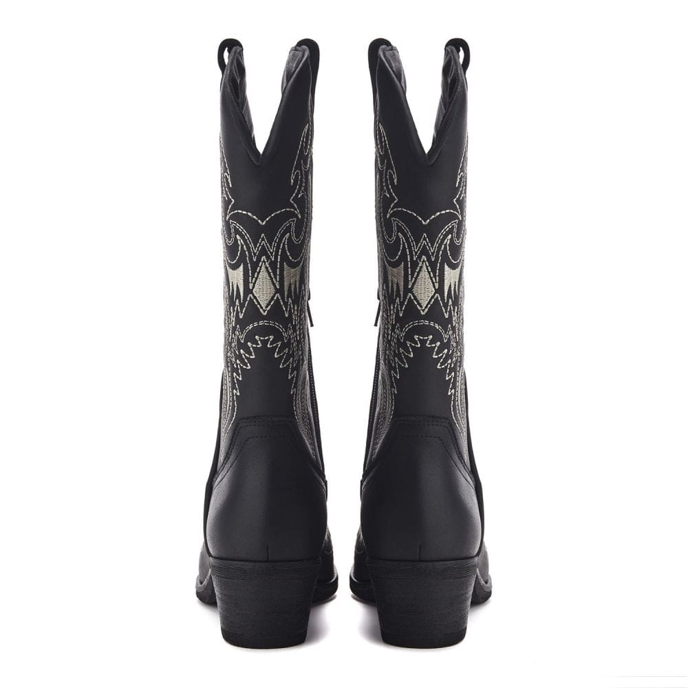 Make a statement in Fantelene. This western boot features stitch detailing and side studs for an elevated feel to the cowboy trend. Complete with a stacked heel for added height and a zip fastening for a comfortable wear.