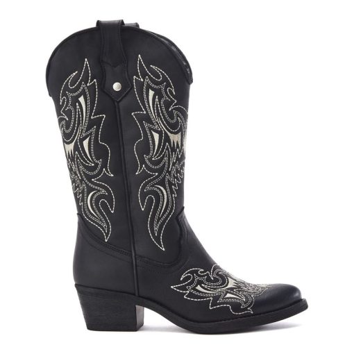 Make a statement in Fantelene. This western boot features stitch detailing and side studs for an elevated feel to the cowboy trend. Complete with a stacked heel for added height and a zip fastening for a comfortable wear.