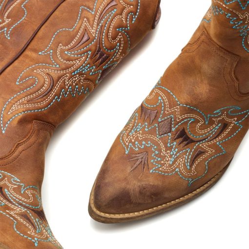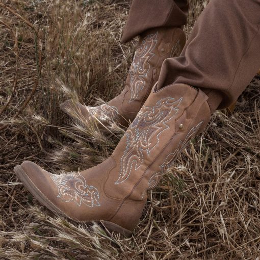 Make a statement in Fantelene. This western boot features stitch detailing and side studs for an elevated feel to the cowboy trend. Complete with a stacked heel for added height and a zip fastening for a comfortable wear.
