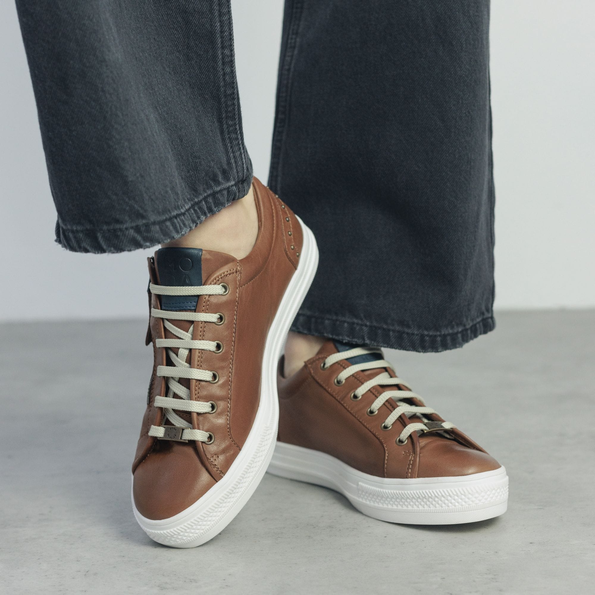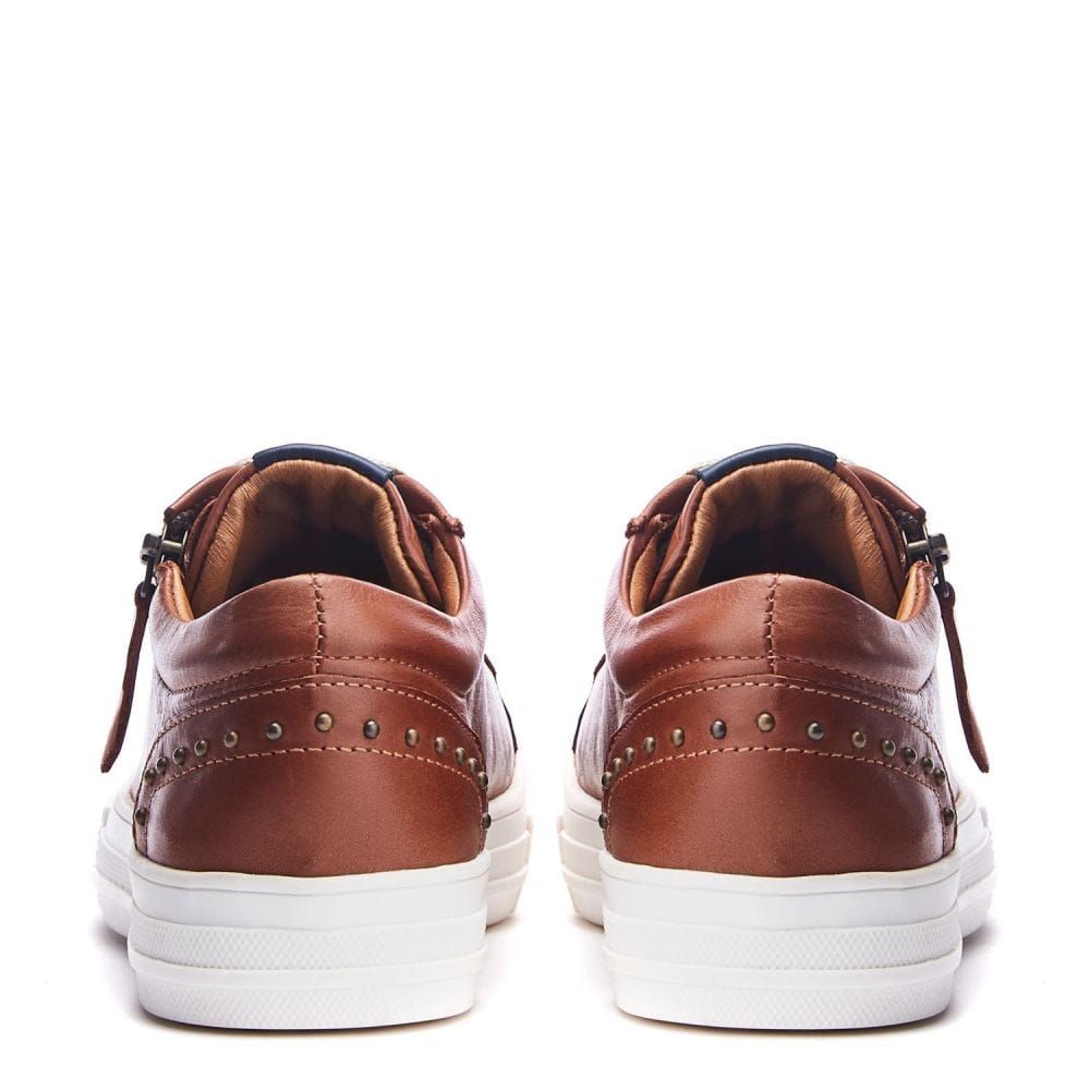 Feel your best in Faxonn, our latest lab sole trainer made with super soft burnished Portuguese leather. This style features a functional zip for easy foot entry and functional laces for a tailored fit. The leather sock provides breathability and comfort, with stud styling to add a touch of class.