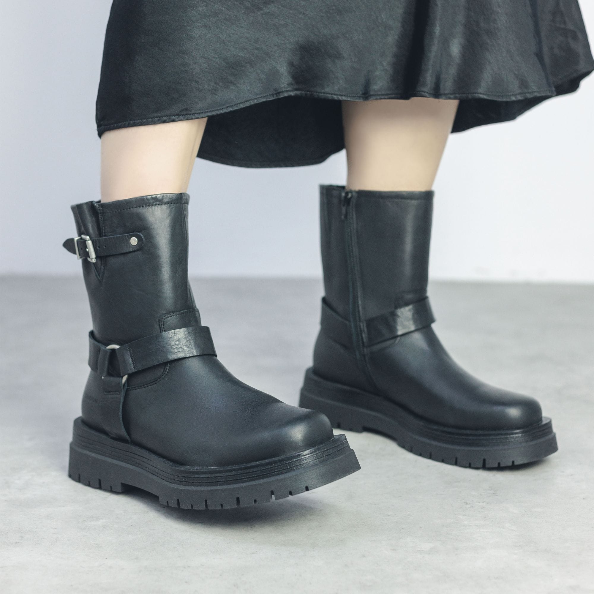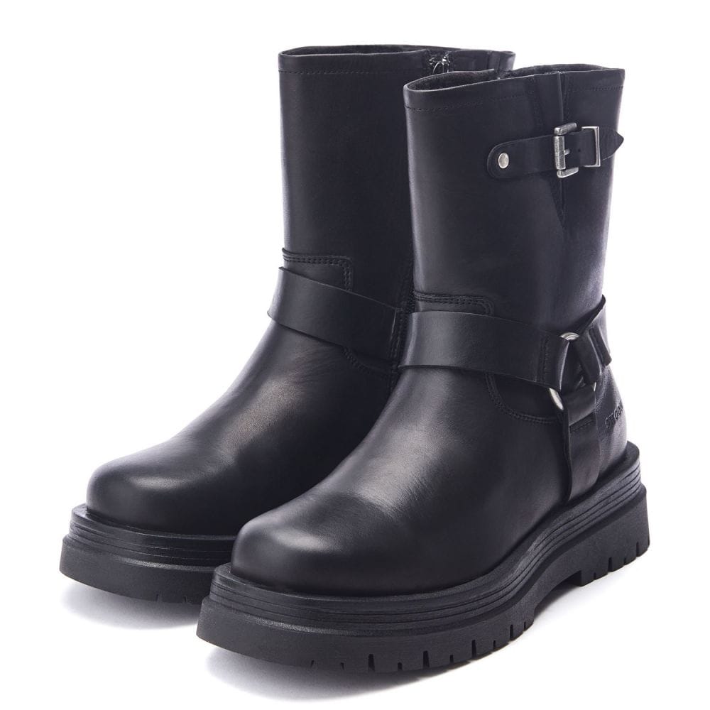 Meet Orleton from the Shoon collection. This mid-calf biker boot features buckle and strap detailing with a chunky cleated sole. Complete with premium soft leather finishing to give an ultimate luxe feel.