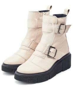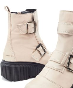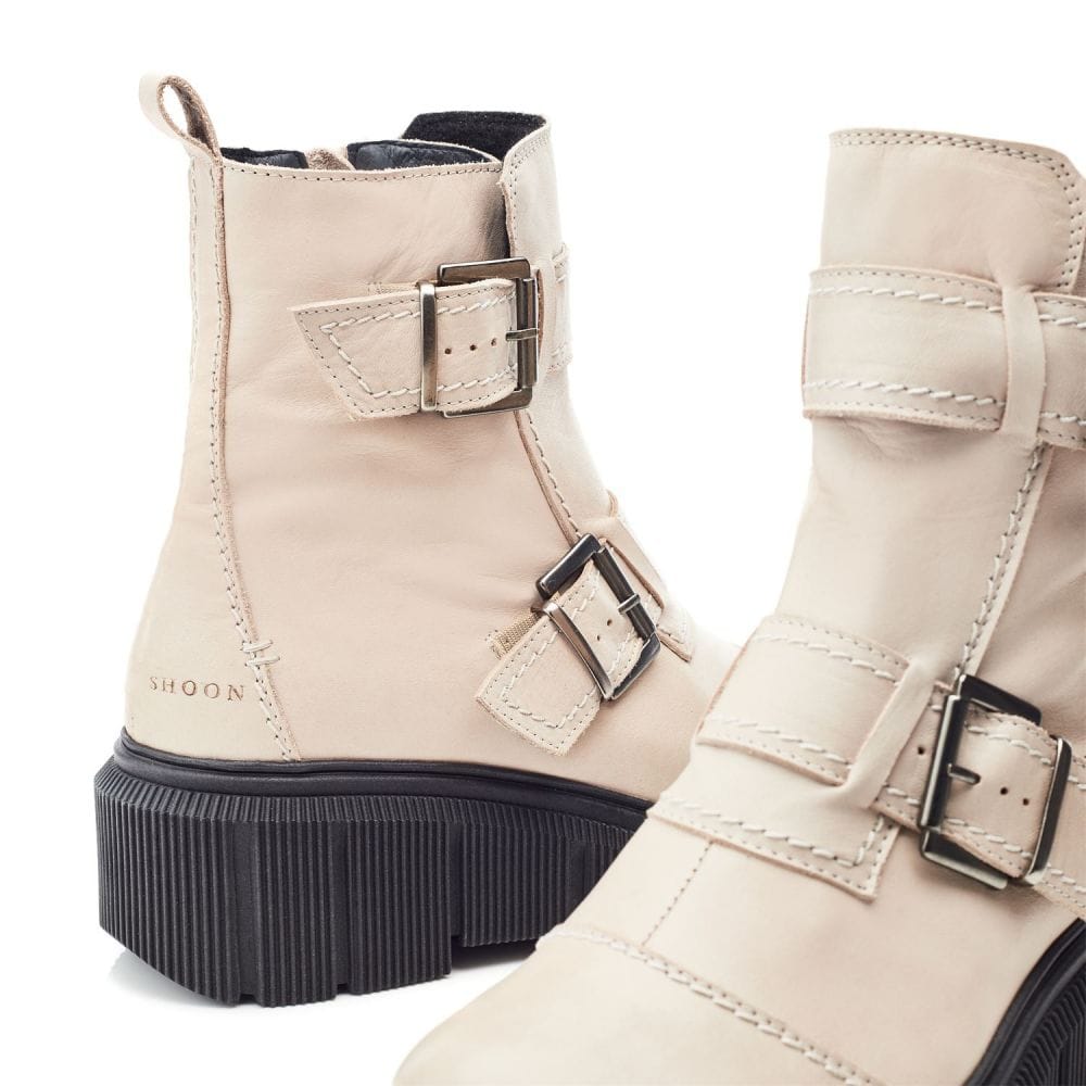 Meet Osborne from the Shoon collection. This chunky boot features strap and buckle embellishments, a rubber wedge sole with lined texture, complete with short faux fur lining and a leather sock for a comfortable and warm wear. The inside zip provides an easy fit.