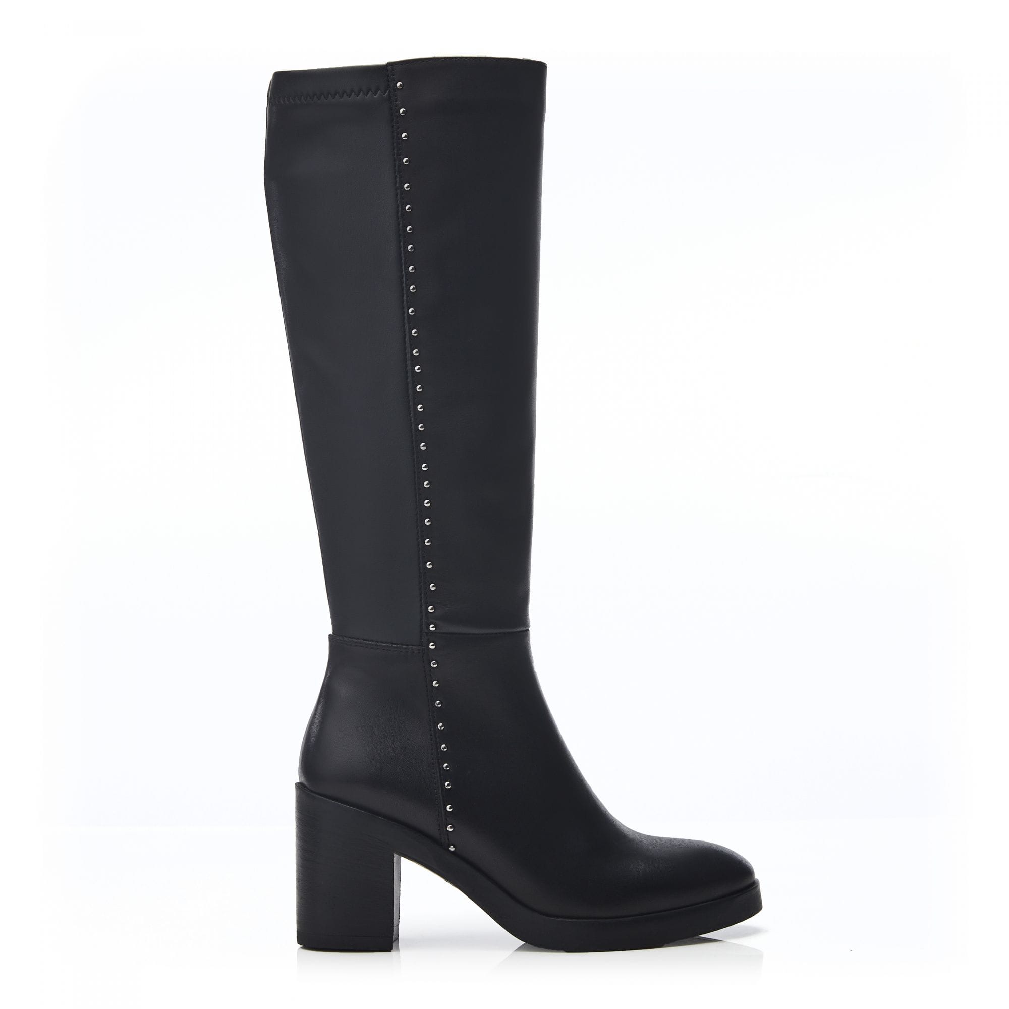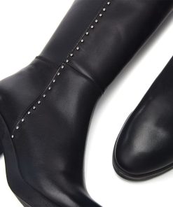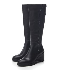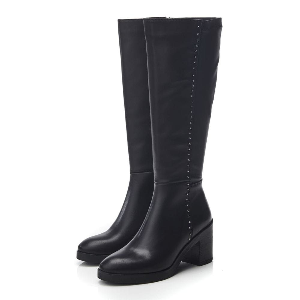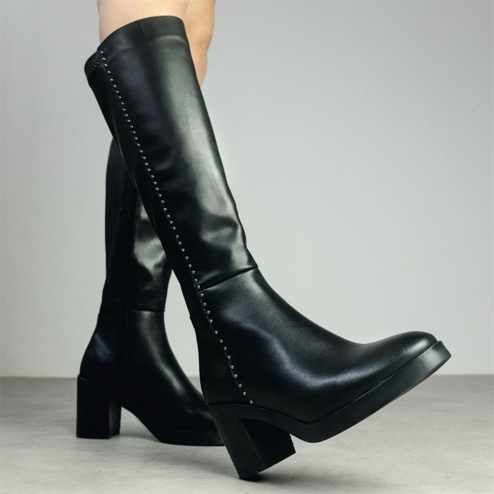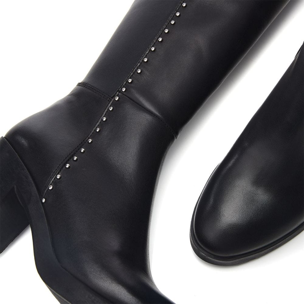 Take on the season in Trinitie. Boasting a block heel and metallic stud detail, adding to the impact of the style. The soft almond toe adds to the silhouette, whilst the zip fastening allows for effortless foot entry. Complete with faux fur lining and leather sock.